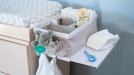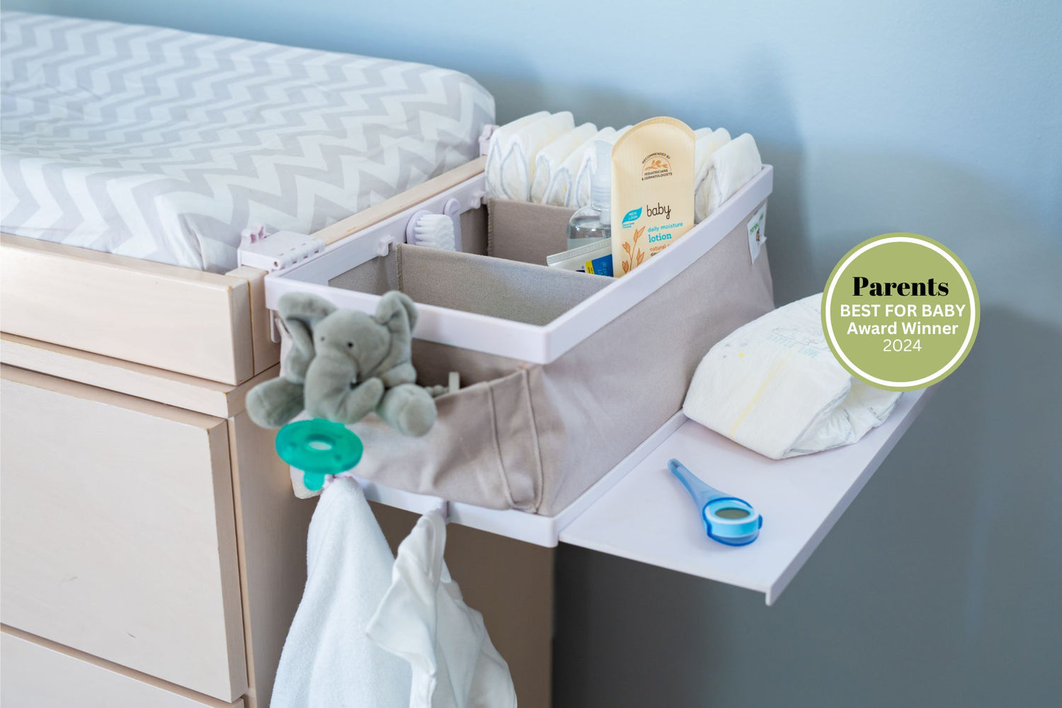 The Monkey Caddy™ is designed to attach to your changing table to hold all your essentials in one place.